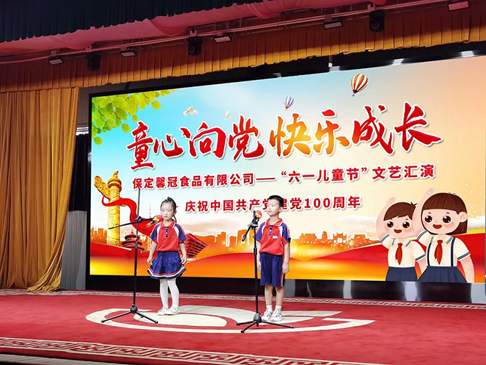 為慶祝中國(guó)共產(chǎn)黨建黨100周年,2021年5月30日保定馨冠食品有限公司于馨冠文化藝術(shù)館舉辦“童心向黨 快樂成長(zhǎng)”暨六一兒童節(jié)文藝匯演活動(dòng)。