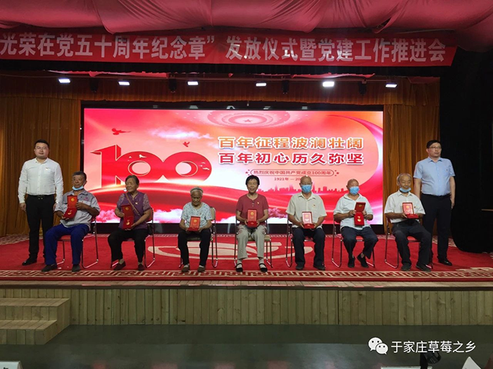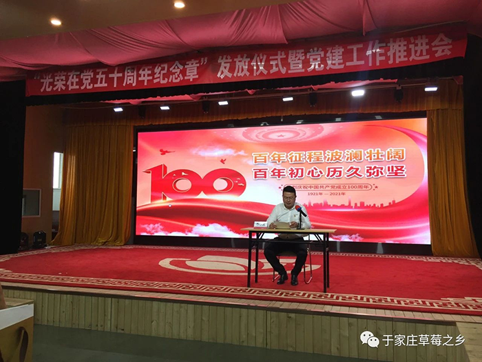 薪火相傳守初心,接續(xù)奮斗新征程。為慶祝中國共產黨成立100周年,推進黨史學習教育走深走實,進一步增強廣大黨員的榮譽感、歸屬感和使命感,激發(fā)廣大黨員愛崗敬業(yè)、奮發(fā)有為的工作熱情,6月29日上午,于家莊鎮(zhèn)“光榮在黨50年紀念章”發(fā)放儀式暨黨建工作推進會于保定市冠香居食品有限公司3樓“馨冠文化藝術館”隆重舉行。