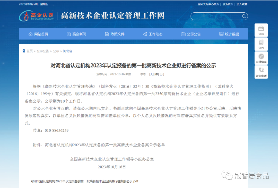 冠香居公司被認定為高新技術(shù)企業(yè)